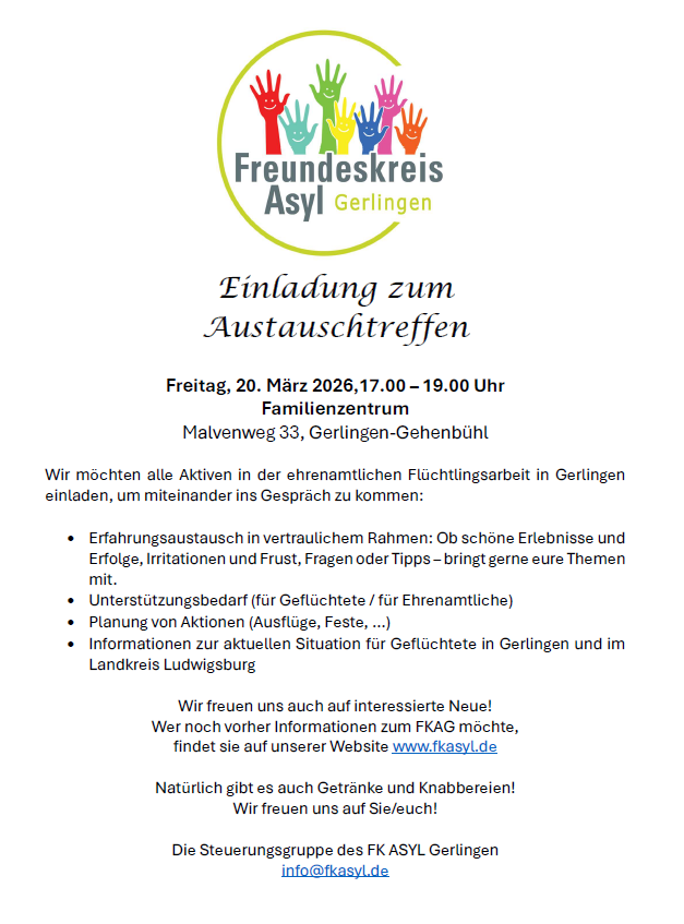 Nachhilfe bei Kindern, Sprachunterstützung für Erwachsene, Begleitung von Flüchtlingen. Wenn Sie mithelfen möchten oder Plätze anzubieten haben, schreiben Sie bitte an info@fkasyl.de
